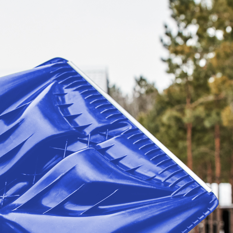 Усиленная алюминиевая планка поможет справиться с настом и наледью. Планку усилили рёбрами жёсткости, которые приподнимают лопату над неровностями.